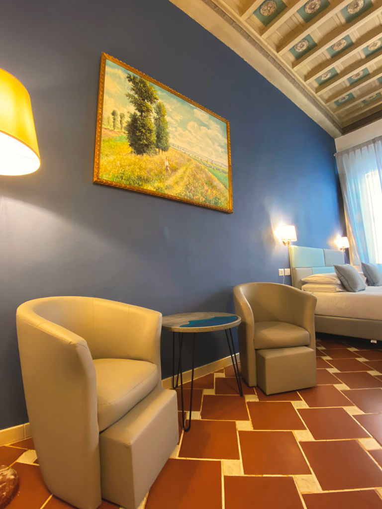 Caratterizzata da soffitti affrescati e dettagli di design, questa suite offre un perfetto connubio tra moderno e storico.